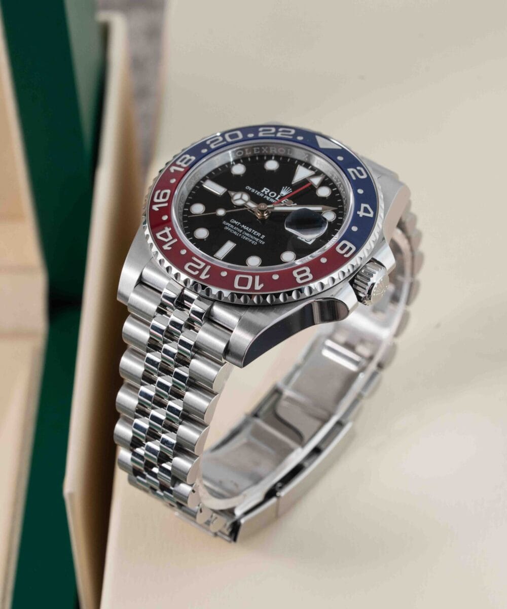 The Rolex GMT Master Jubilee chain is a meticulously crafted accessory designed to complement the iconic GMT Master watch. Featuring the distinctive Jubilee link design, this chain offers both elegance and durability, making it an ideal choice for collectors and enthusiasts seeking to enhance their timepiece’s aesthetic. Its precise construction ensures a comfortable fit and long-lasting wear, reflecting Rolex’s commitment to quality and sophistication. Perfect for those who appreciate fine craftsmanship, this Jubilee chain adds a refined touch to any Rolex GMT Master, elevating its classic style with expert precision.