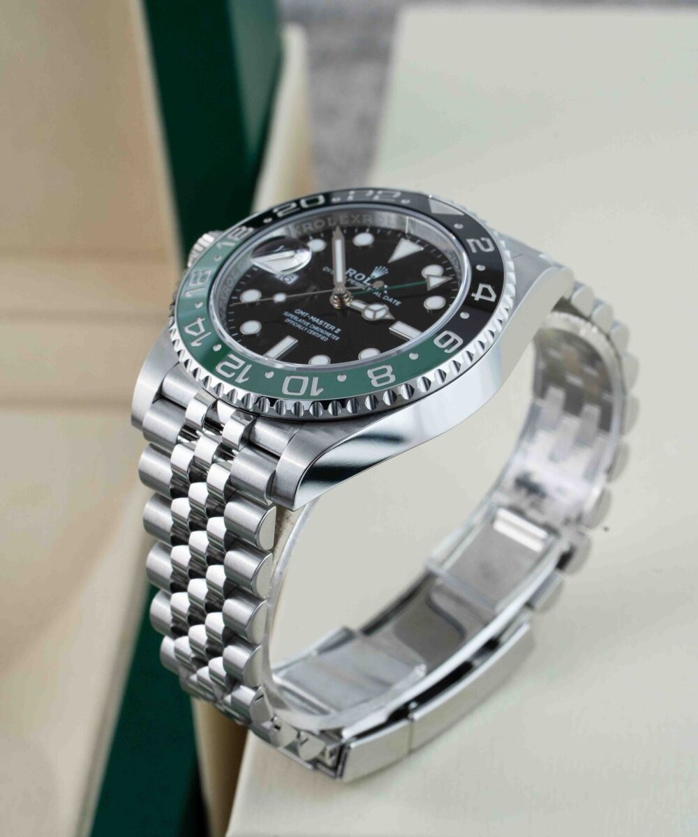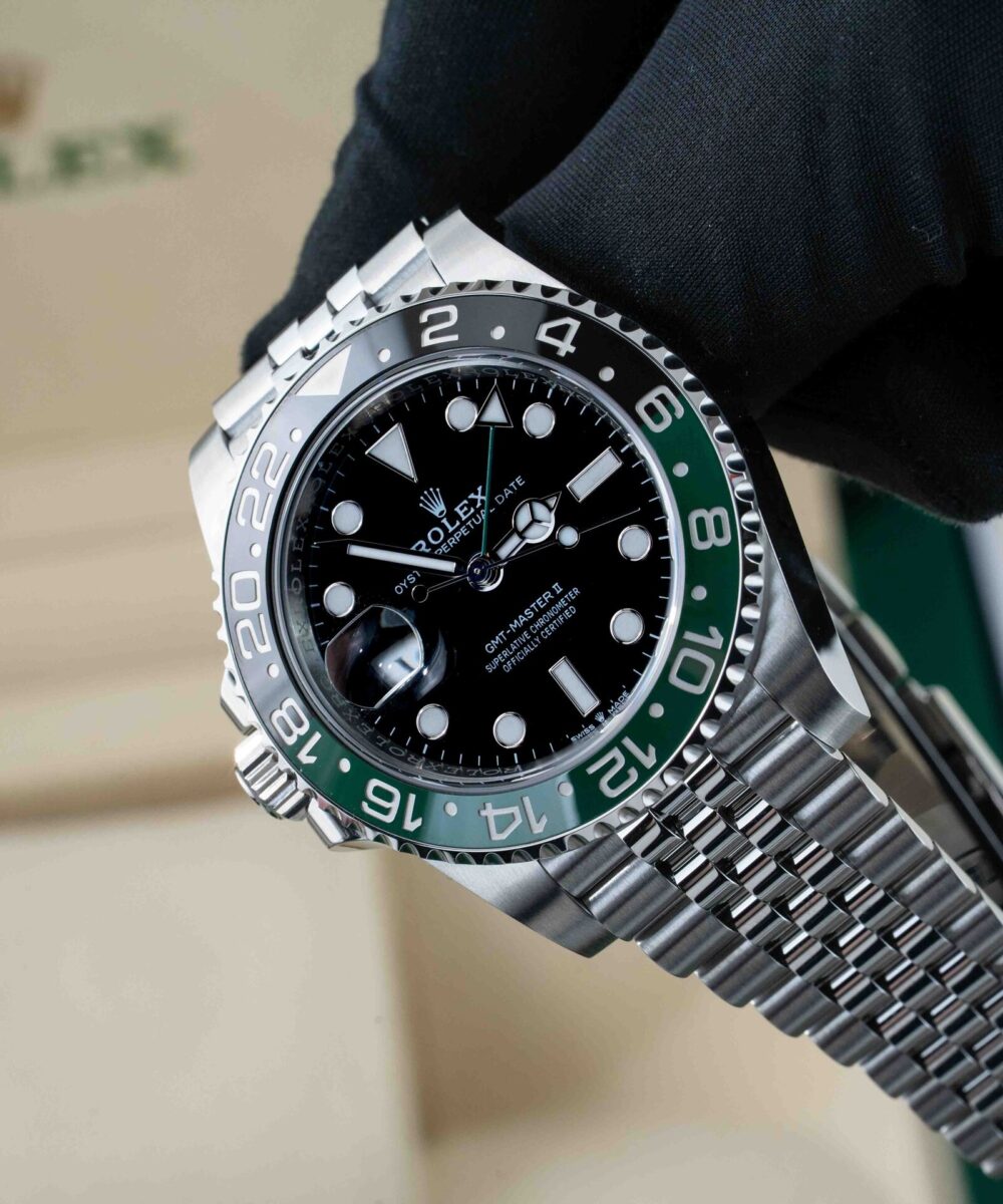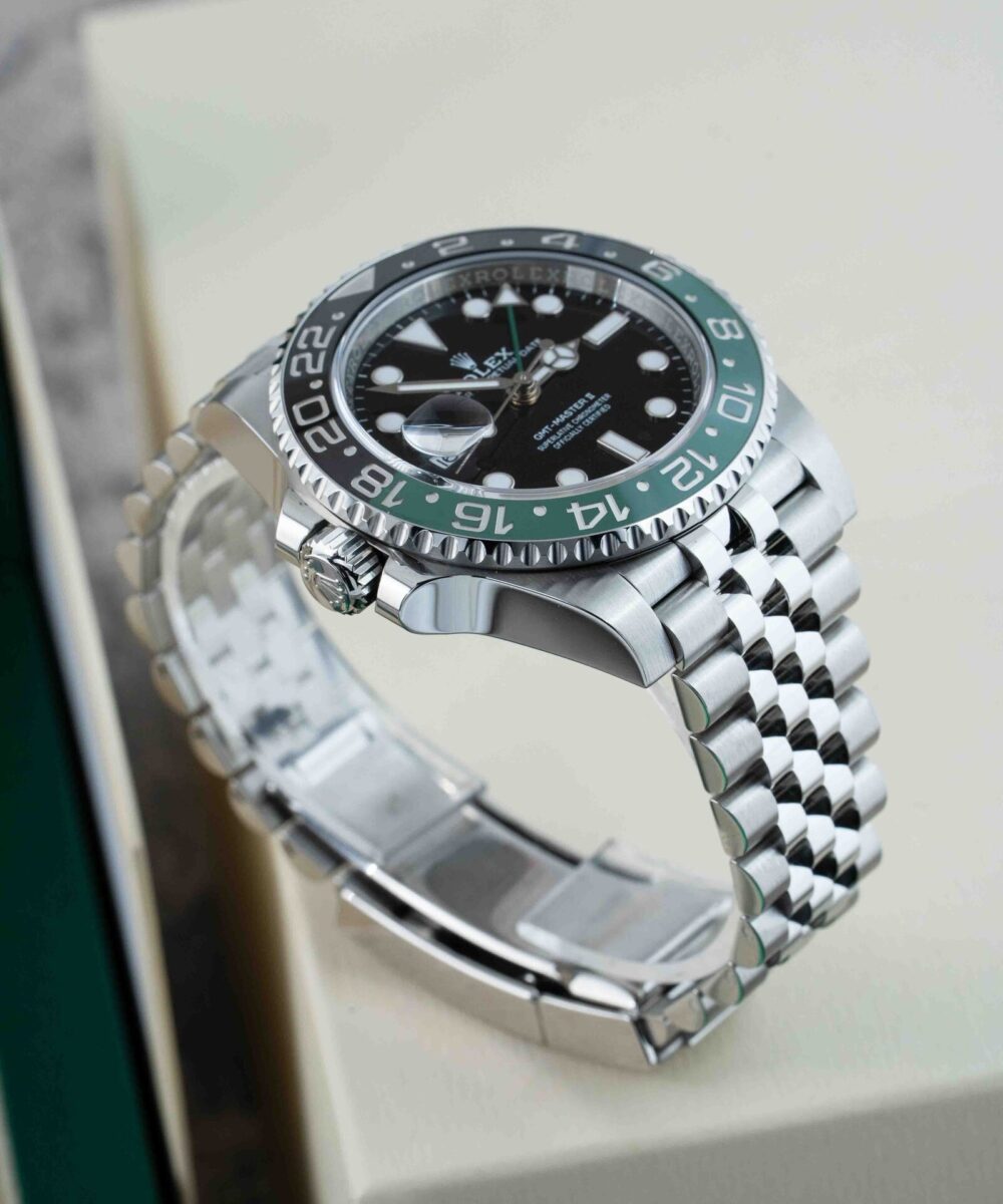 The Rolex GMT Master Jubilee chain in Green and Black combines iconic design with exceptional craftsmanship. Featuring the distinctive Jubilee bracelet, this timepiece offers both comfort and elegance. Its dual-tone green and black bezel enhances readability and adds a sophisticated touch, ideal for tracking multiple time zones with precision. Perfect for collectors and professionals seeking a reliable, stylish watch that