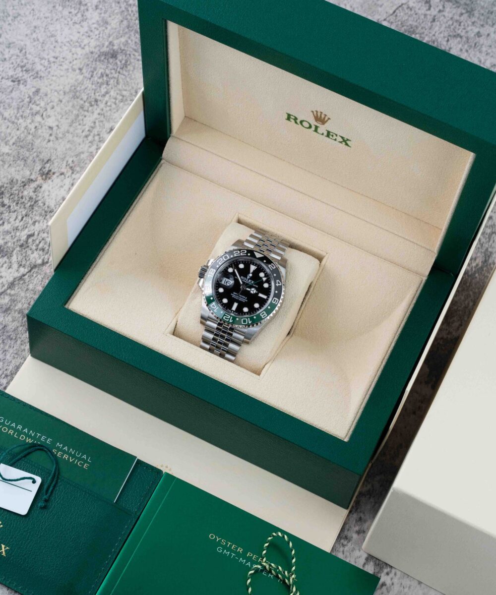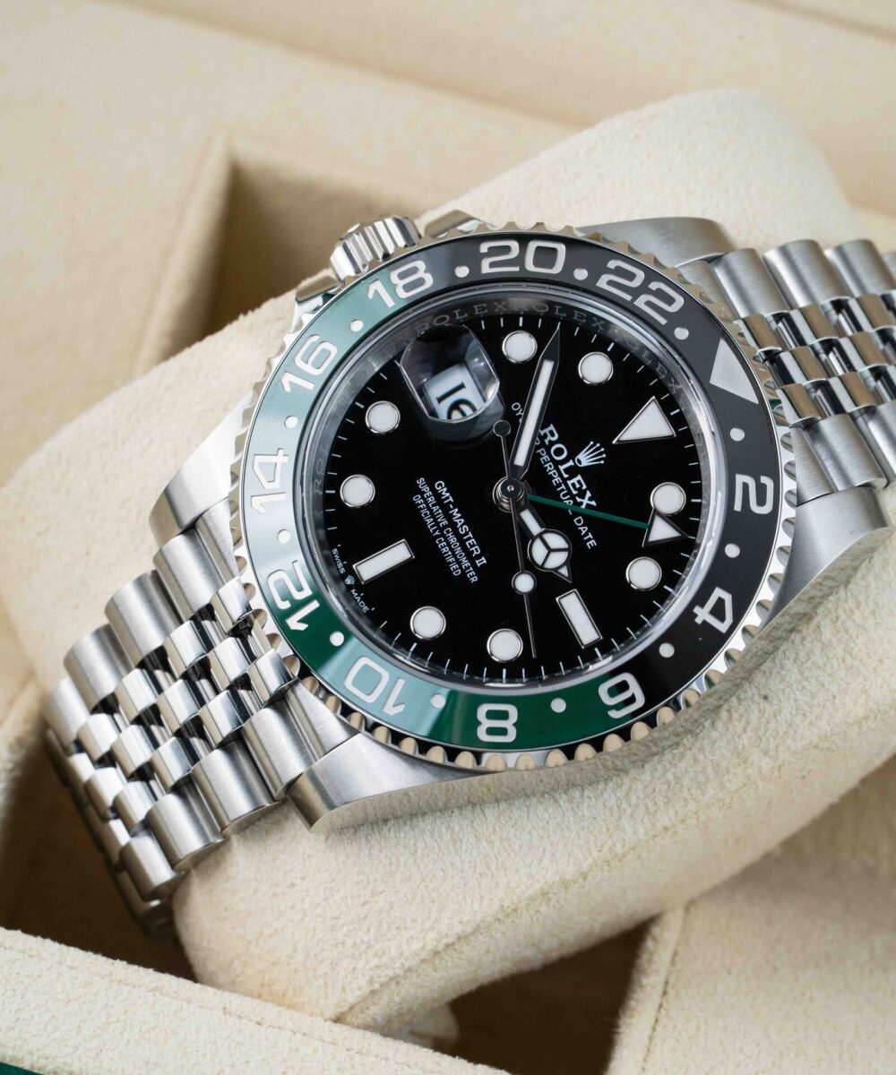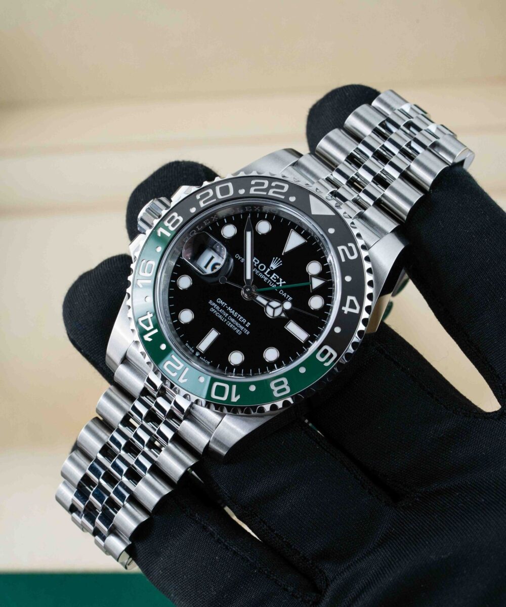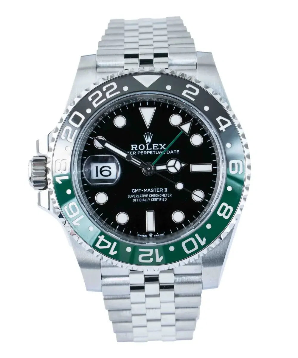 The Rolex GMT Master Jubilee chain in Green and Black combines iconic design with exceptional craftsmanship. Featuring the distinctive Jubilee bracelet, this timepiece offers both comfort and elegance. Its dual-tone green and black bezel enhances readability and adds a sophisticated touch, ideal for tracking multiple time zones with precision. Perfect for collectors and professionals seeking a reliable, stylish watch that