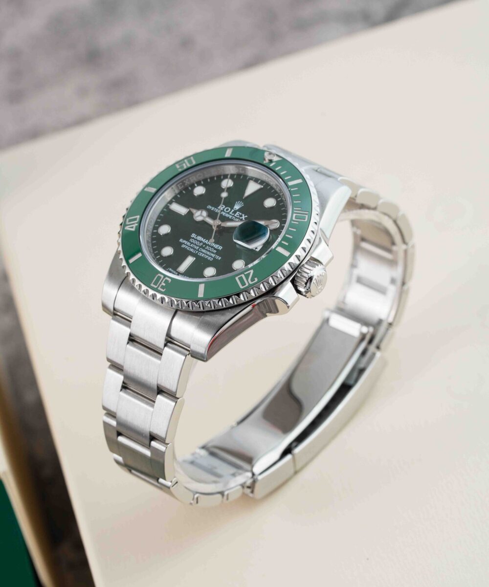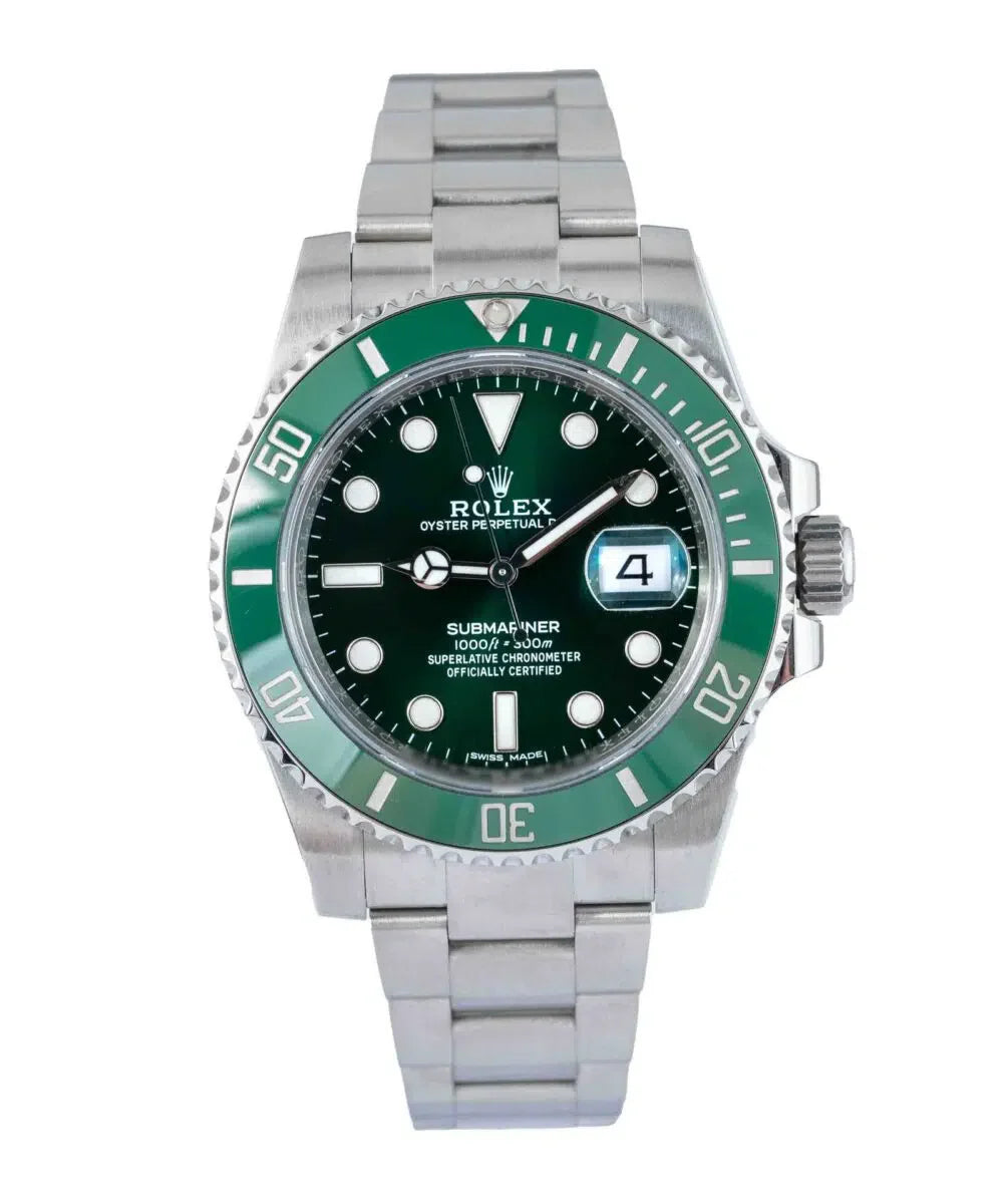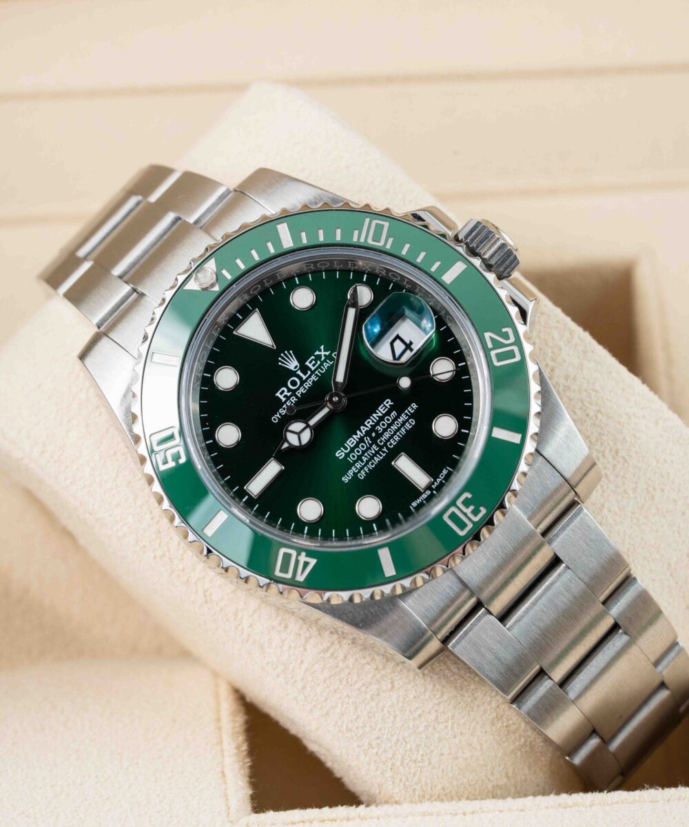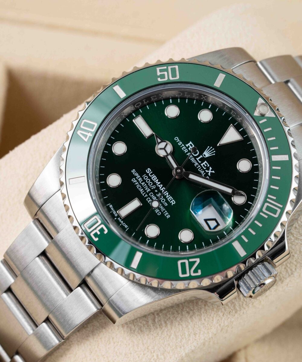 The Rolex Submariner Green is a distinguished timepiece renowned for its iconic design and exceptional craftsmanship. Featuring a vibrant green bezel and dial, this watch combines aesthetic appeal with robust functionality. Engineered for professional divers, it offers water resistance up to 300 meters and a unidirectional rotatable bezel for precise time tracking underwater. Its Oystersteel case ensures durability and corrosion resistance, while the self-winding mechanical movement guarantees reliable performance. The Submariner Green is a perfect blend of luxury and technical excellence, making it a coveted choice for watch enthusiasts and collectors alike.
