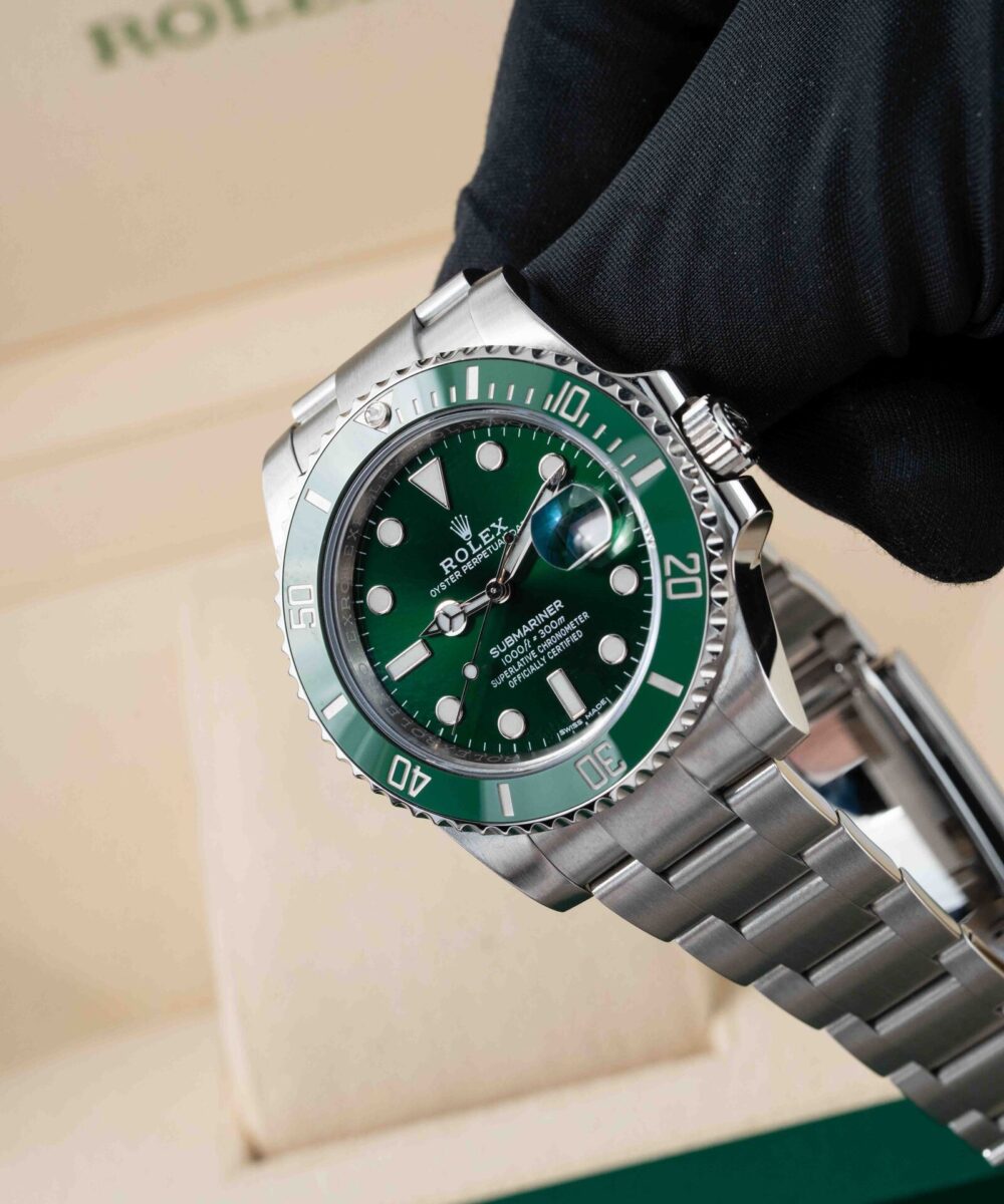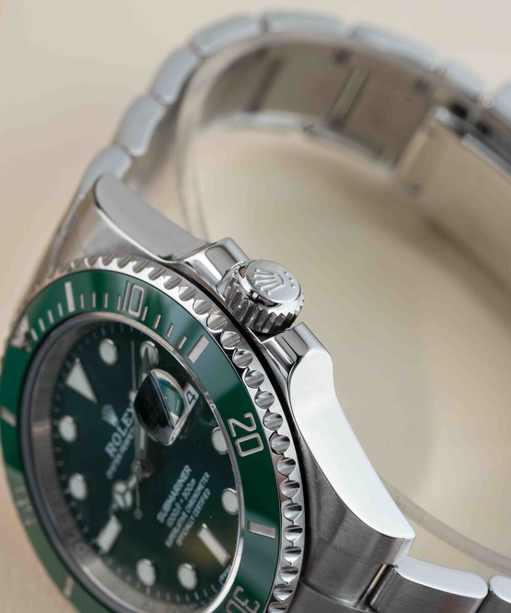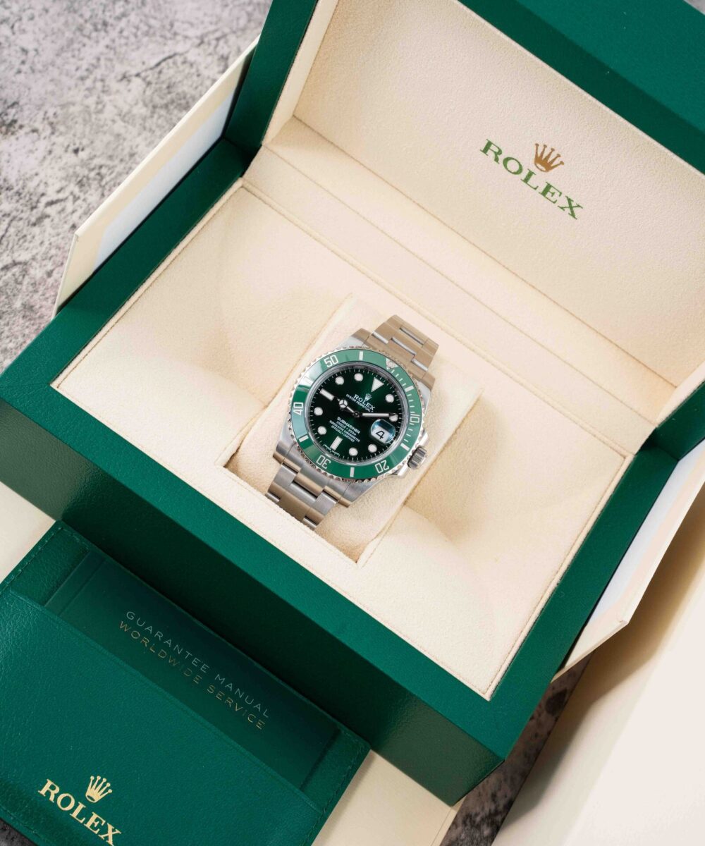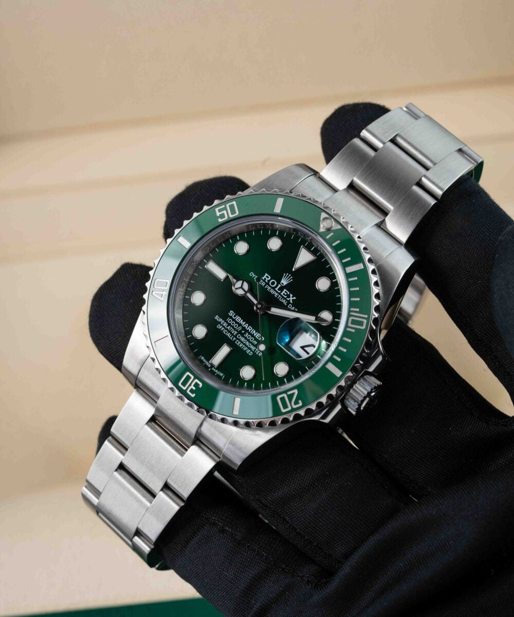 The Rolex Submariner Green is a distinguished timepiece renowned for its iconic design and exceptional craftsmanship. Featuring a vibrant green bezel and dial, this watch combines aesthetic appeal with robust functionality. Engineered for professional divers, it offers water resistance up to 300 meters and a unidirectional rotatable bezel for precise time tracking underwater. Its Oystersteel case ensures durability and corrosion resistance, while the self-winding mechanical movement guarantees reliable performance. The Submariner Green is a perfect blend of luxury and technical excellence, making it a coveted choice for watch enthusiasts and collectors alike.