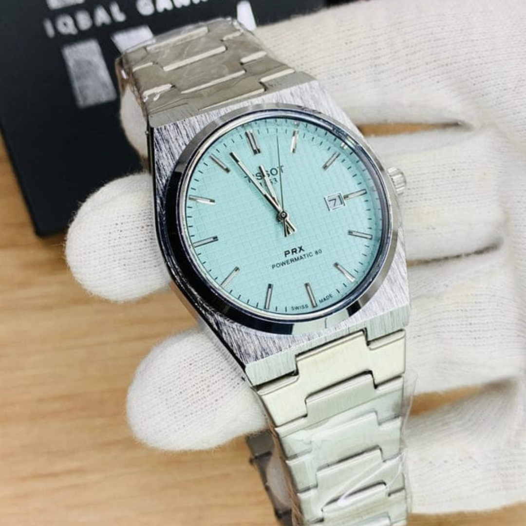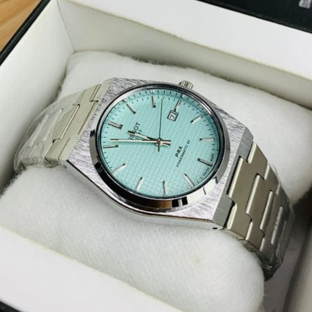 The Tissot PRX Silver Tiffany is a refined timepiece that combines classic elegance with modern precision. Featuring a sleek silver dial inspired by Tiffany’s iconic hue, this watch offers exceptional readability and a distinctive aesthetic. Its robust stainless steel case and integrated bracelet ensure durability and comfort for everyday wear. Powered by a reliable Swiss quartz movement, the PRX Silver Tiffany guarantees accurate timekeeping with minimal maintenance. Ideal for professionals and collectors alike, this watch seamlessly blends style and functionality, making it a sophisticated addition to any wardrobe.